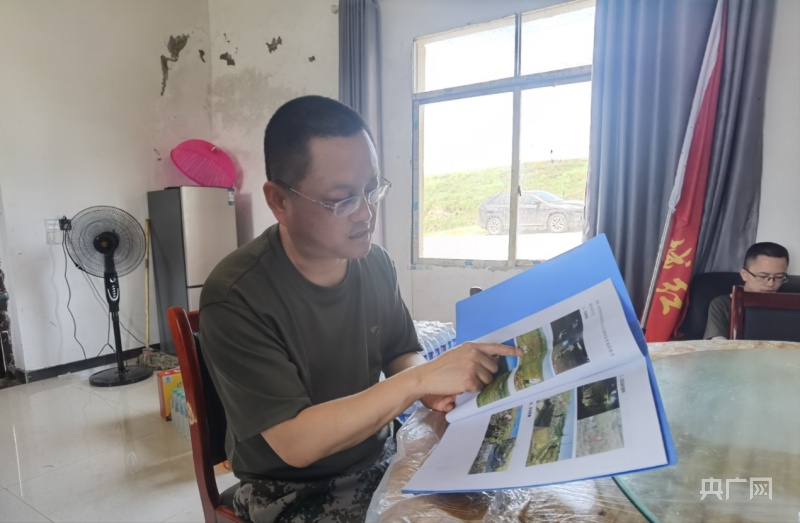 罗嗣际翻阅当天的防汛工作日报(央广网记者胡斐摄)