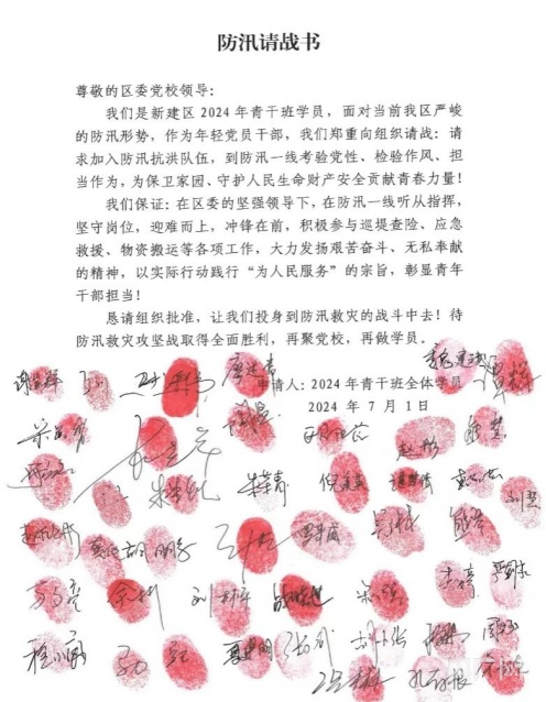 新建区委党校青干班全体学员的请战书(来源:南昌市新建区委党校)
