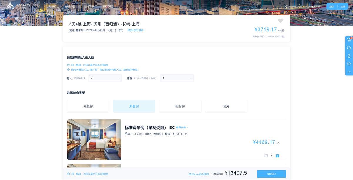 爱达·魔都号相关行程(截图自爱达邮轮上海有限公司官网)