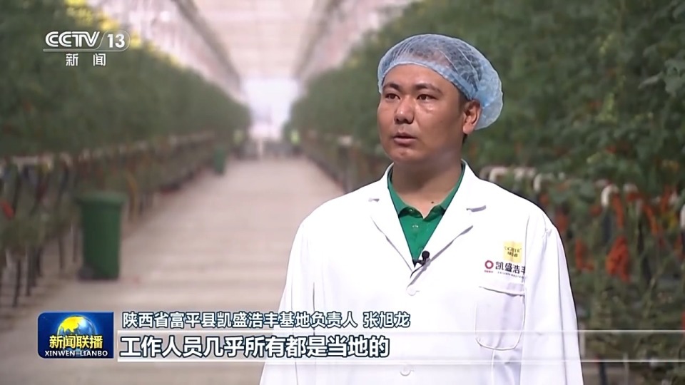 陕西省富平县凯盛浩丰基地负责人 张旭龙:工作人员几乎所有都是当地的,年轻人占大多数。