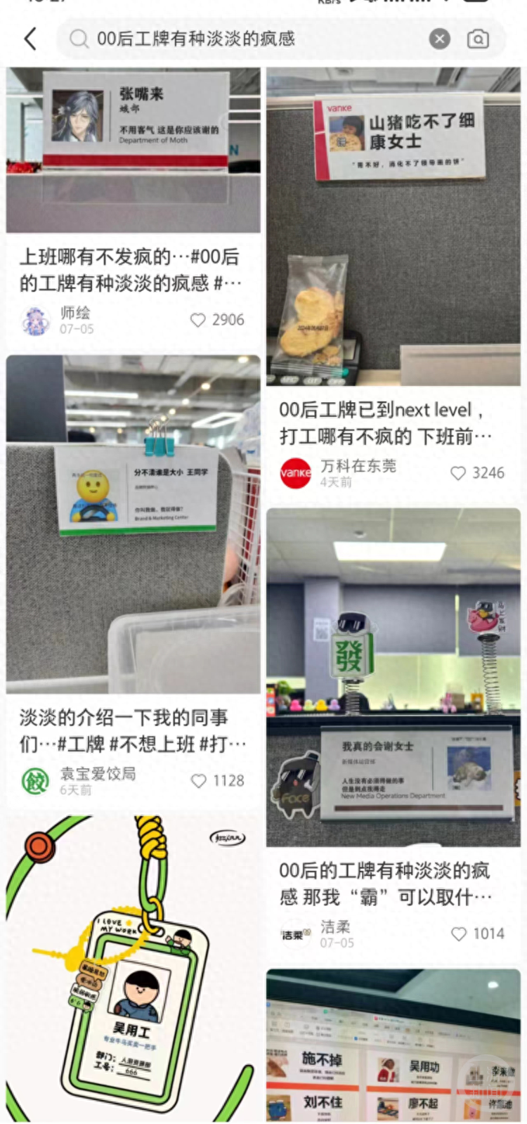 近日,“00后的工牌有种淡淡的疯感”冲上热搜。网络图