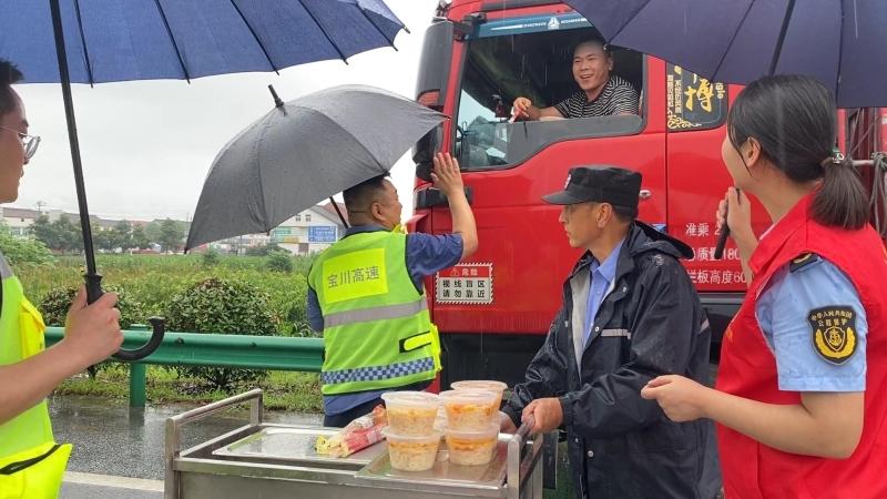 同时,联合高速交警第一时间实行交通管制、远端分流管控,利用路段沿线LED情报板、收费站出入口提示等方式及时发布天气变化、道路管制及通行信息和出行提醒,引导社会公众合理规划出行路线。及时调动后勤保障力量,组建志愿服务队为滞留车辆、司乘提供简餐热食、应急药品等,全力做好服务保障。