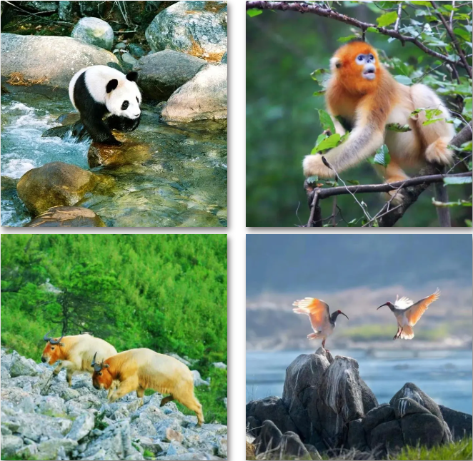 佛坪县境内目前有国家重点保护动物45种,其中大熊猫、朱鹮、金丝猴、羚牛等一级保护动物8种。