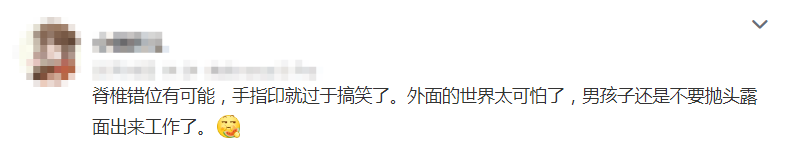 脊椎错位有可能,手指印就过于搞笑了。外面的世界太可怕了,男孩子还是不要抛头露面出来工作了。