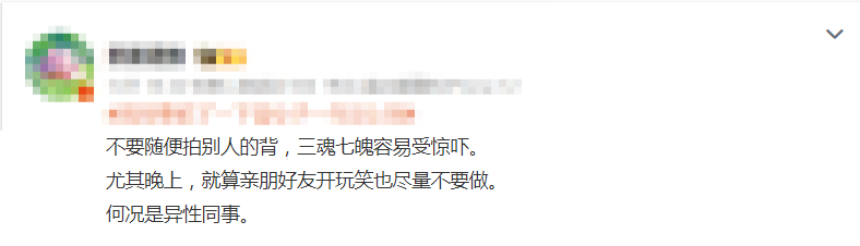 不要随便拍别人的背,三魂七魄容易受惊吓。尤其晚上,就算亲朋好友开玩笑也尽量不要做。何况是异性同事。