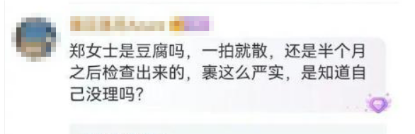 郑女士是豆腐吗,一拍就散,还是半个月之后检查出来的,裹这么严实,是知道自己没理吗?