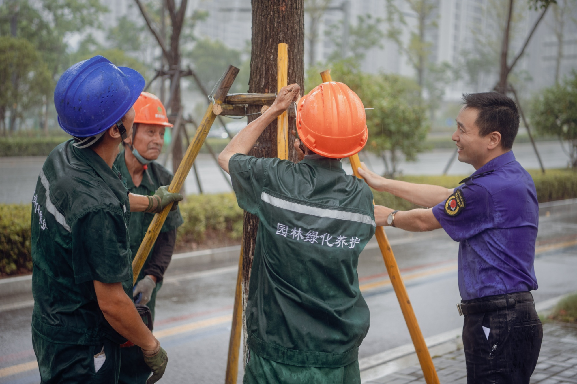 龙湾区综合行政执法局工作人员加固行道树(央广网发龙湾区委宣传部供图)