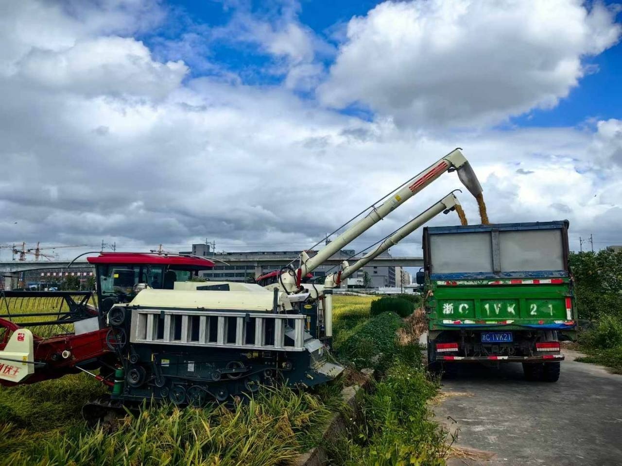 温州瑞安市塘下镇“人”“机”合力抢收(央广网发瑞安市融媒体中心供图)