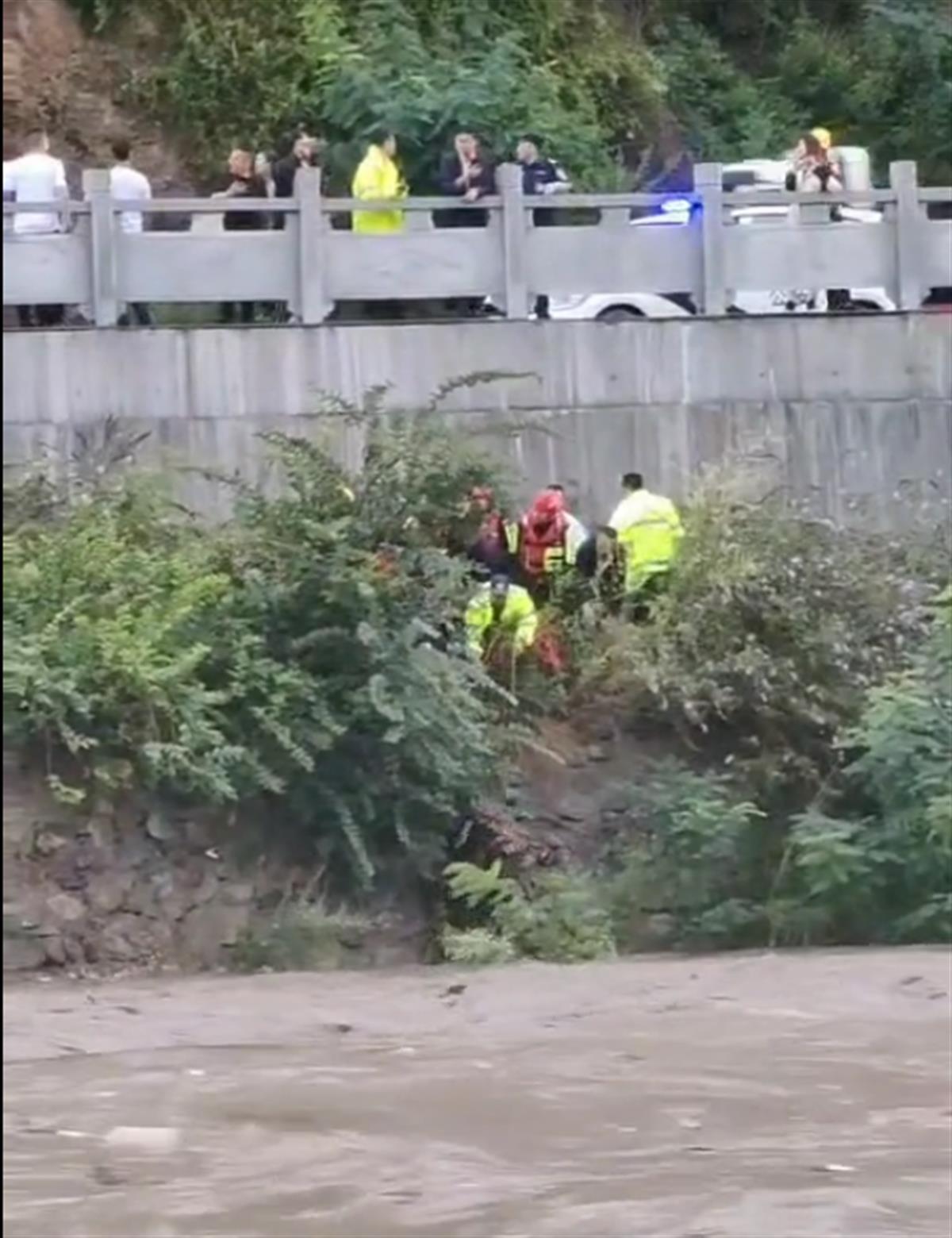 7月24日,一位游客发布的一段惊险视频引发网友关注。视频显示,水流湍急的江中,一名身穿消防救援队制服的男子抓住江边一棵很小的树苗后停了下来。附近岸边,多名群众、消防员、民警快速奔跑。他们靠近男子的位置后,翻过江边的护栏,抛下一根救援绳,齐心协力将男子救上岸。