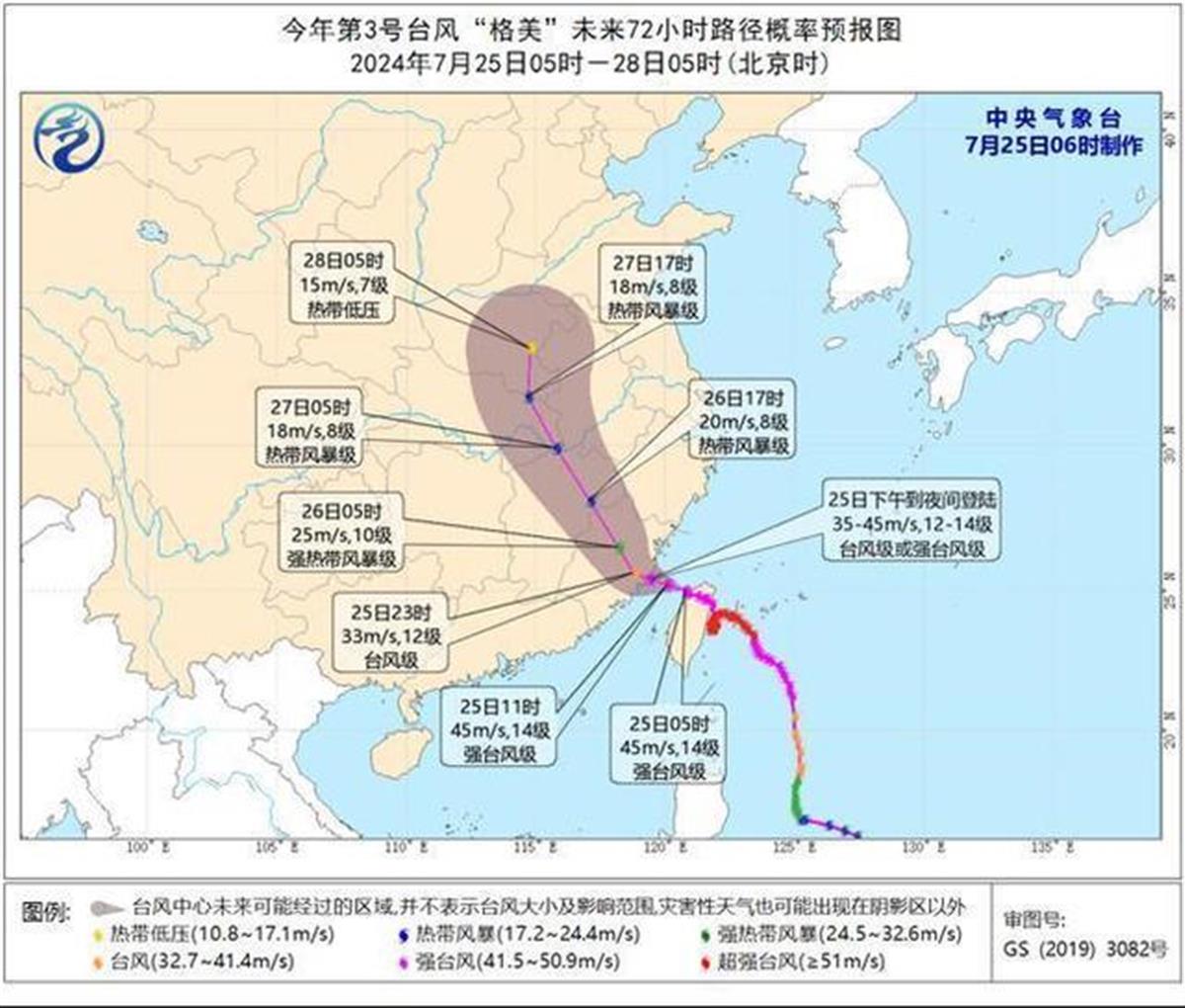 7月24日,国家防总办公室、应急管理部继续组织气象、水利、自然资源等部门进行防汛防台风专题联合会商。会商指出,当前防汛抗洪抢险救灾工作已进入到南北多线、洪涝和台风交织作战的关键时期。第3号台风“格美”移动速度快、水汽含量大,预计25日在福建福鼎到晋江一带沿海登陆,影响省份或超过10个;川陕甘宁地区降雨仍在持续,且具有一定极端性,山洪和地质灾害防范压力较大;长江、淮河等流域退水期堤防巡查防守压力不减,防汛防台风形势复杂严峻。