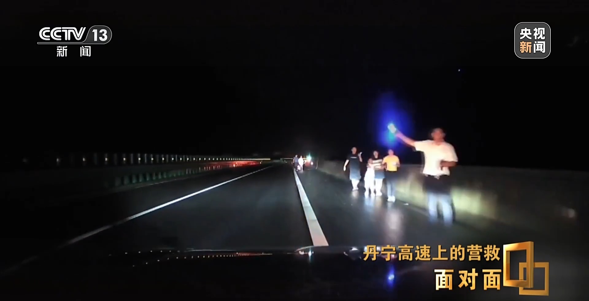 夏辉:我说今天晚上不管想什么办法,要把车拦住,当时我想到一个,以前我车上放了一个应急手电,我后面没有看到来车,我拼命往回跑,我跑到副驾驶上,把应急手电拿出来了。