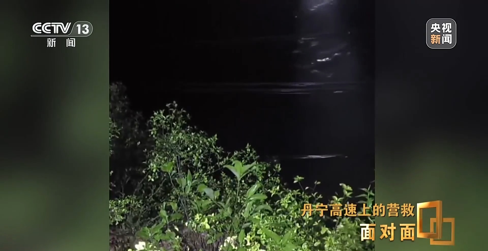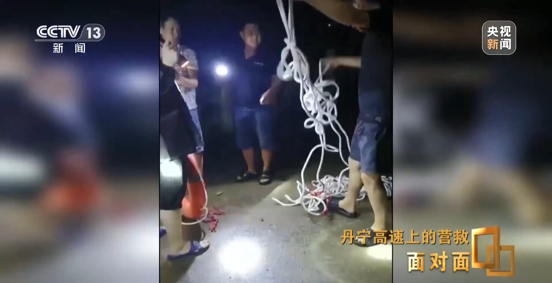 饶昊:当时天特别黑,下边都是树挡着,看不到那个人,对面有村民,拿手电筒照着求救人员。