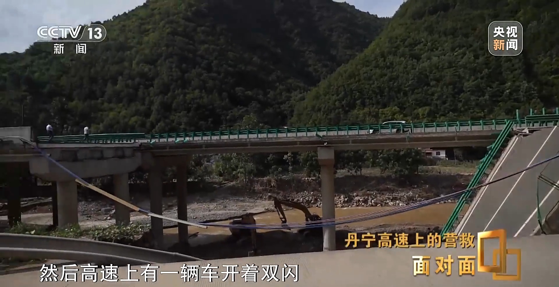 夏辉:对。我爱人说你怎么急刹?是不是前面出车祸了,我说没有,我说刚才一台车突然不见了,我爱人抬头一看,说塌方了,我再把玻璃打开,往前面一看,听到水声很大。
