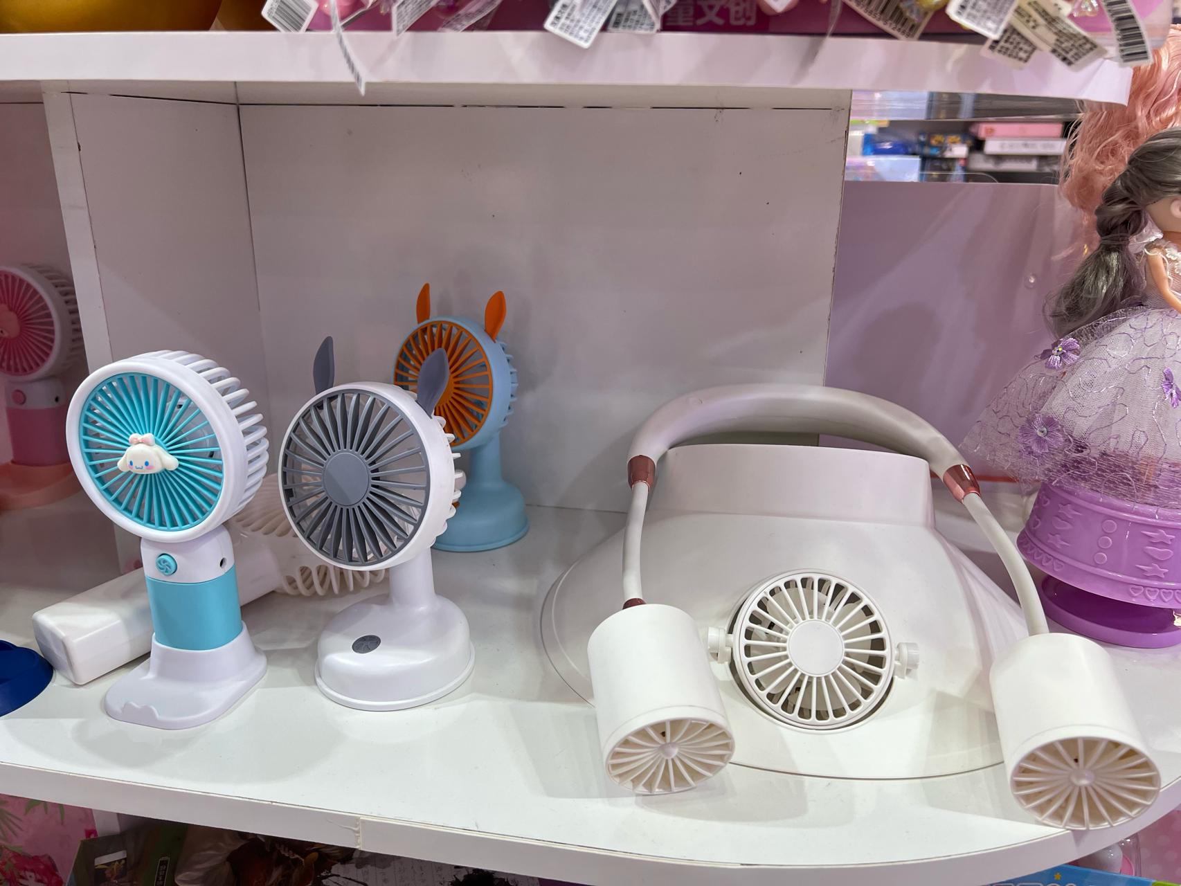 7月30日,记者随机走访了一些文具店、精品店,发现挂脖小风扇十分常见。