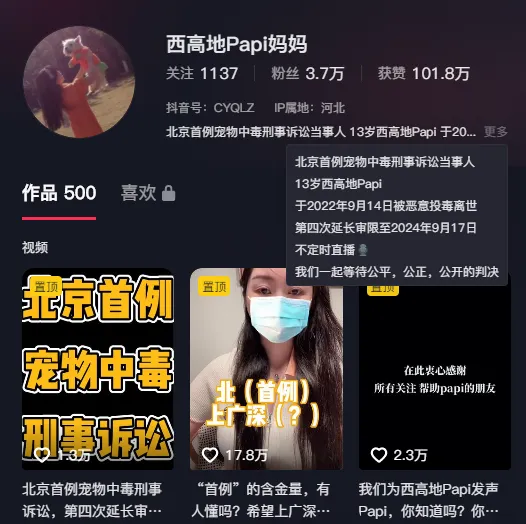 Papi的主人持续在社交平台上为自己的小狗发声。