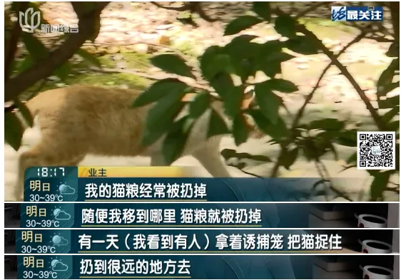 小区物业也表示,保安保洁如果发现有可疑情况会进行定点跟进,也会关注在公共区域投喂猫粮的情况。
