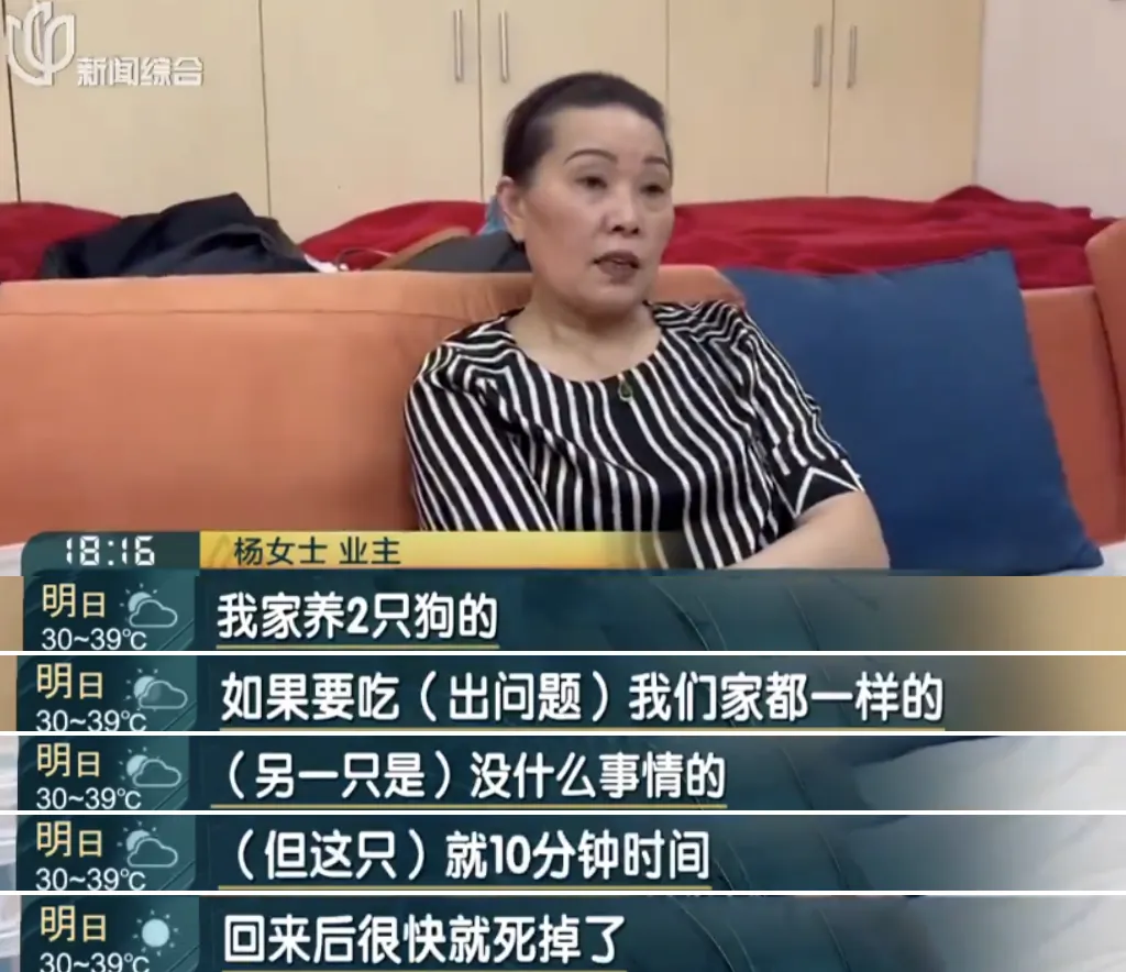 而除了流浪猫外,还有一只宠物狗也未能幸免。7月28号清晨,业主杨女士在小区内遛狗,没想到不久后,养了5年的爱犬就抽搐死亡,呕吐物中还吐出了一些猫粮。察觉事发异常后,杨女士家人随即报警。