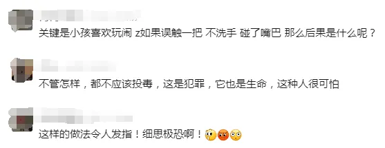 此外令杨先生和不少网友后怕的是,事发当天家里还有小孩和老人,如果孩子接触到了毒物,后果不堪设想。