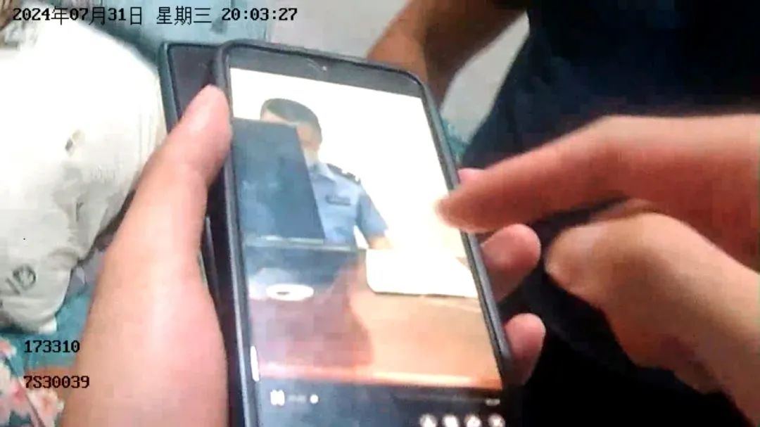 民警韩知城赶到报警人家中时,女孩还在与骗子语音。一边通话,一边还不断点击手机屏幕。