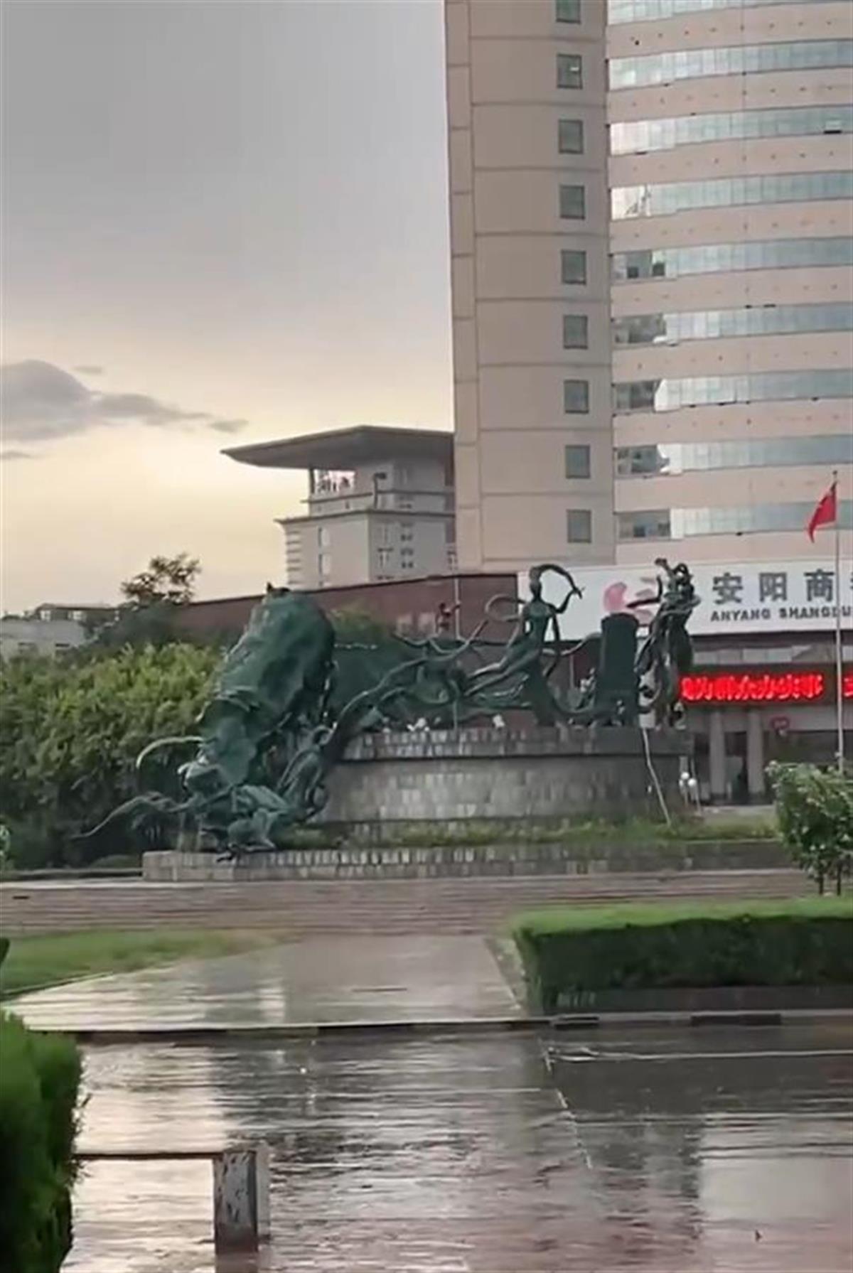 极目新闻记者注意到,当天下午,有网友发视频称,雷暴大风天气给安阳市区造成影响,市区内有大树被风刮倒,安阳市高新区的地标性雕塑“银杏仙子”被阵风刮倒。公开资料显示,位于东风路海河大道路口转盘内的“银杏仙子”被当地老百姓亲切称作“七仙女”,建于上世纪90年代,是当地的地标性雕塑之一。