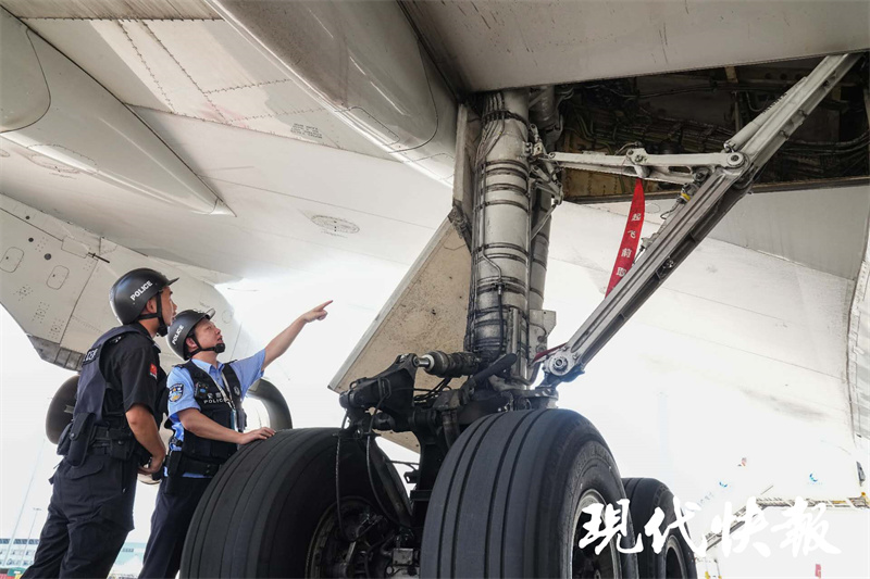 现代快报讯(通讯员 宁边新 记者 季雨)连日来,南京市气象台连续发布高温红色预警信号。8月8日上午,南京禄口国际机场停机坪的温度一度接近50℃,但仍有一群人顶着高温坚守岗位。当天11点40分,载有20余吨机械材料等货物的Y87452次货运航班,从美国芝加哥顺利抵达南京禄口国际机场,南京出入境边防检查站民警杨保圣和同事,第一时间穿戴好执勤背心和执法记录仪,前往远机位对该航班执行清仓检查任务。