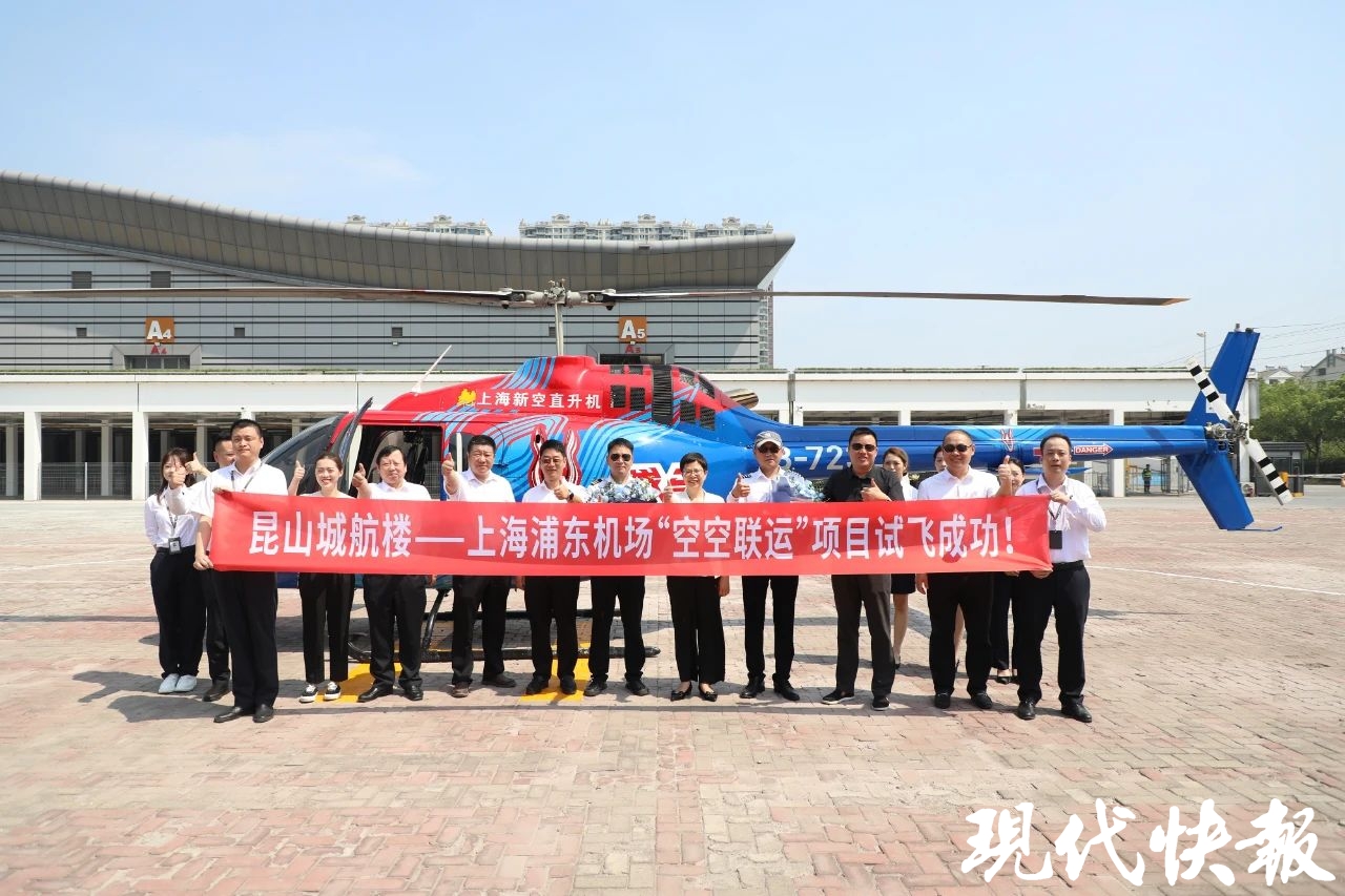 现代快报讯(记者何洁高达)8月10日上午,昆山城市航站楼—上海浦东机场的“空空联运”服务迎来试航,打造空中联程接驳、商务出行新业态,将原本1.5—2小时的地面车程缩短至30分钟内。