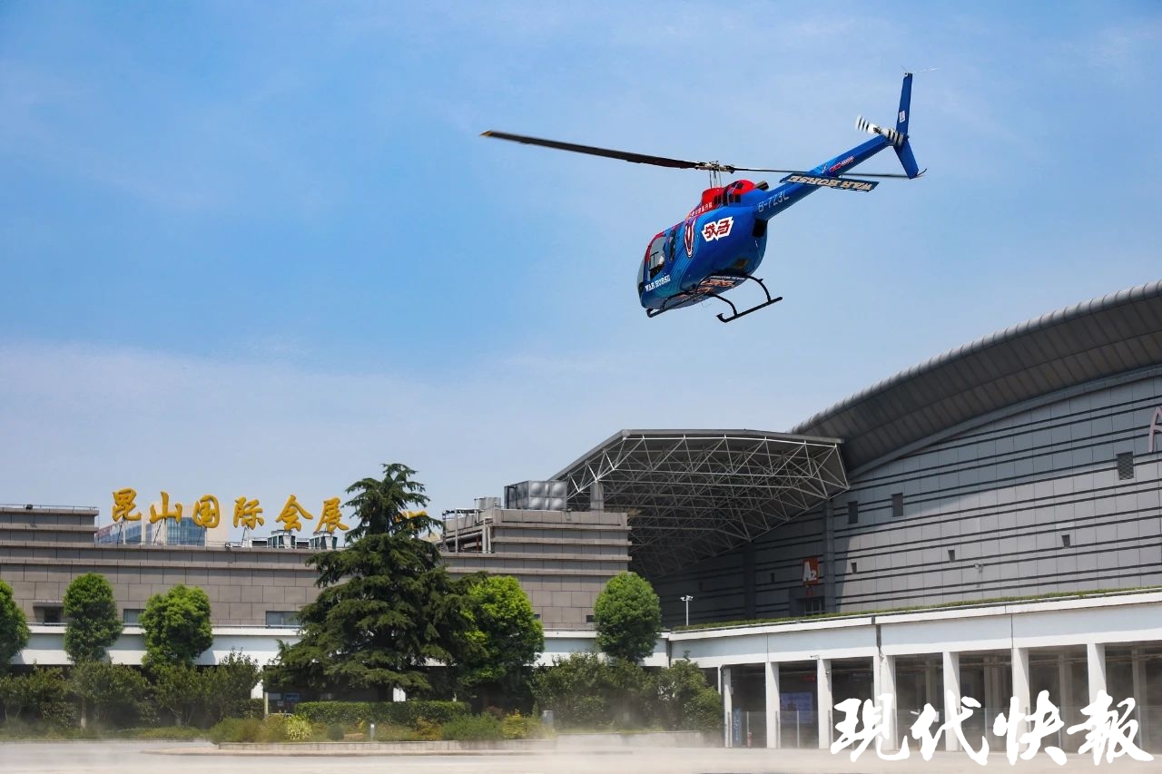 当日上午10点46分,在昆山城市航站楼东广场,伴随螺旋桨的轰鸣声,一架轻型直升机腾空而起,很快上升到285米高度,并按照既定航线向上海浦东机场方向高速驶去,最高航速接近200公里/小时。上午11点17分,该机顺利抵达上海浦东星野基地,成功完成本次试飞任务。