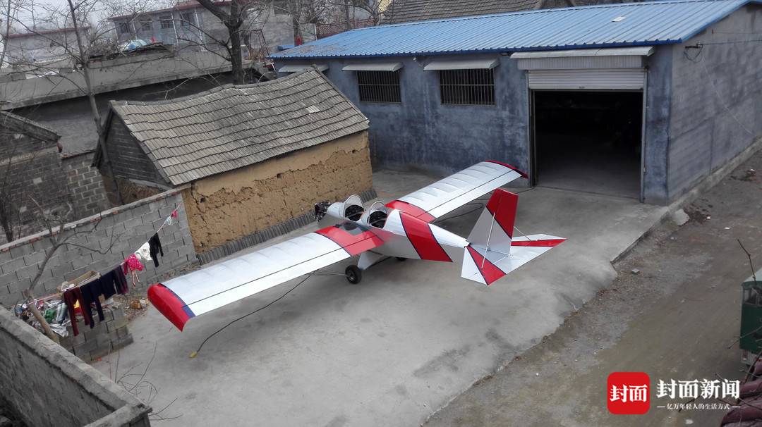 耗时一年左右,在自家院子里,朱士全组装成了第一架小型动力飞机。这架机身长度在五米左右的飞机占据了院子的大部分地方,甚至堵住了门口,他和家人的进出都受到影响。那时的朱士全没想过,十几年后,他会拥有一个三百多平的机库,专门用来停放他造出的飞机,而造出飞机的数量,也从1台跳至18台。