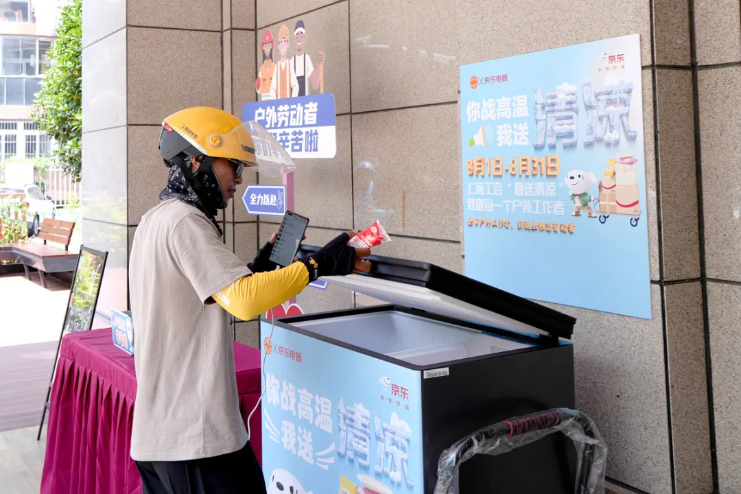 炎炎夏日,上海户外职工爱心接力站为户外劳动者提供着各种特色服务,让城市的每一个角落都充满温暖与关怀。