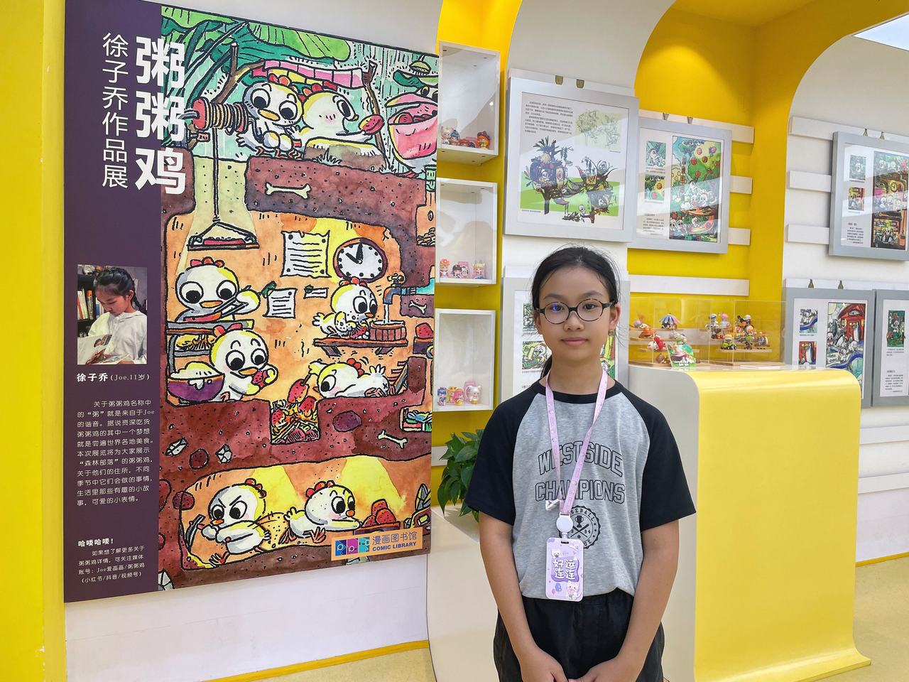 圆圆的脑袋,大大的眼睛,红色的鸡冠,还扎着一对俏皮的小辫,这样呆萌可爱的卡通形象背后居然是一个小学生创作的。