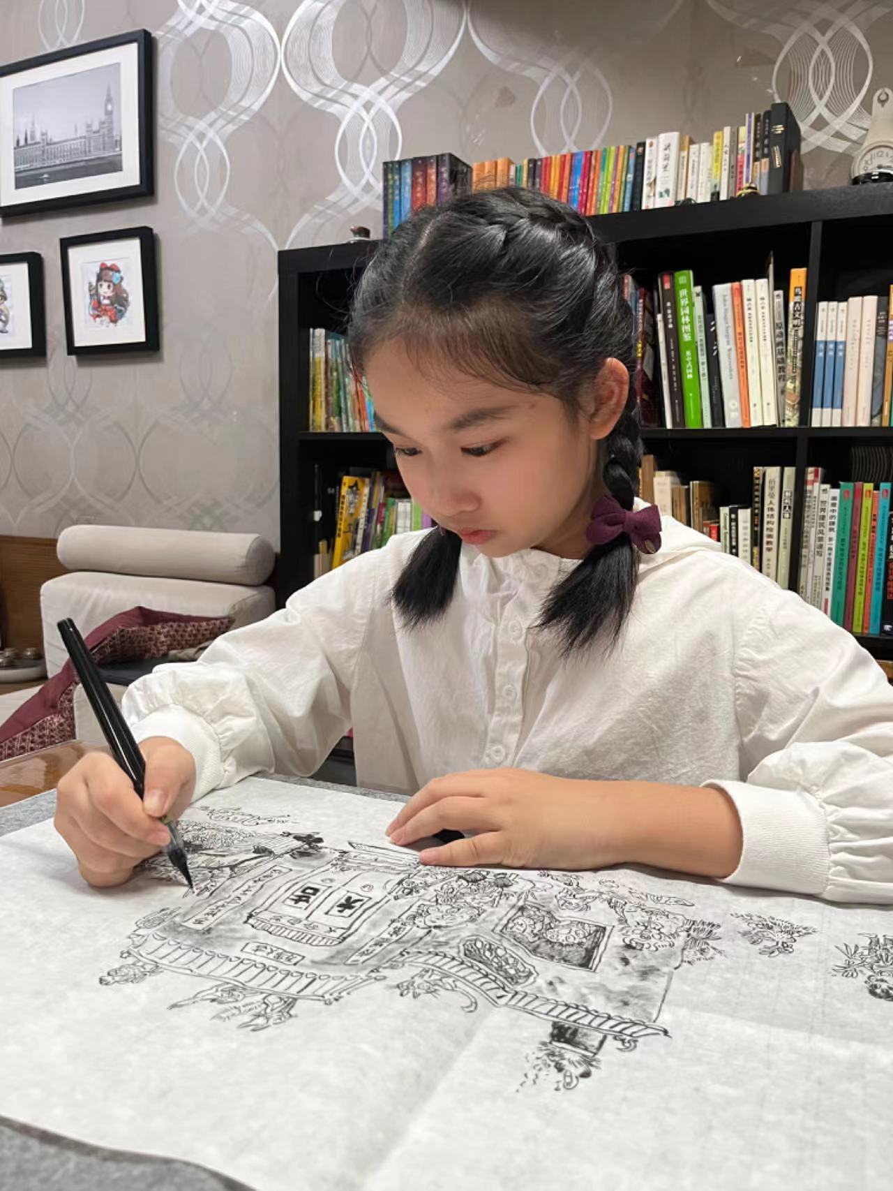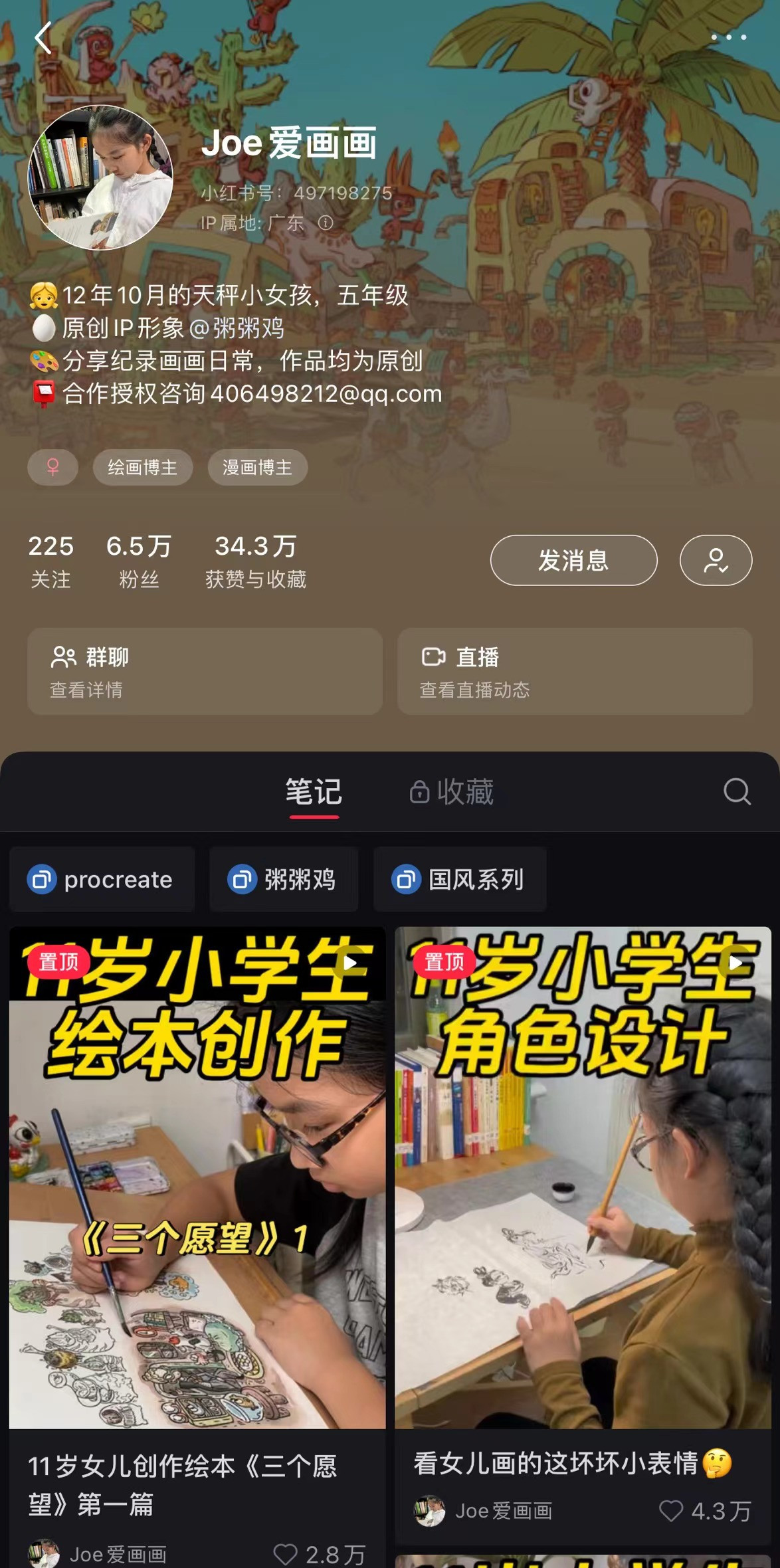 这位小学生叫徐子乔,今年才11岁,是广州一所小学的五年级学生。别看年纪小小,她在社交平台上已是小有名气的网红画手,在她的笔下,美丽优雅的国风美女,又或者是俏皮可爱的卡通动物,都十分惟妙惟肖。靠着扎实的画功,她的抖音账号单条作画的视频播放量就能破千万。