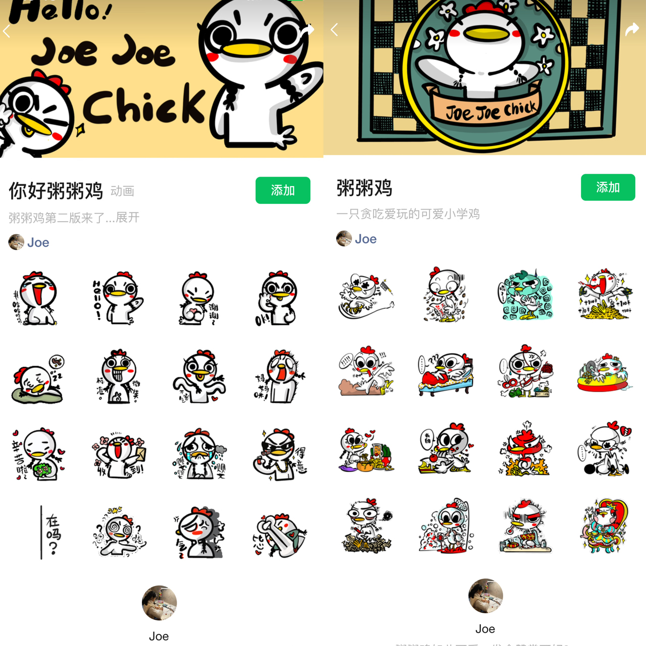 子乔表示,在微信上“粥粥鸡”的表情包是免费提供使用的。“画画和创作给我带来了很多乐趣,我也希望这只小鸡能给大家带去欢乐。”