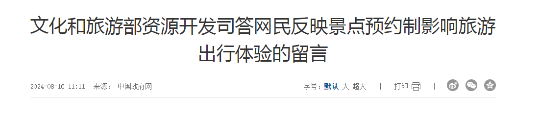 国家对于“黄牛”的倒票行为也加大了打击力度。8月16日,文化和旅游部资源开发司在中国政府网上答复:网民反映的景区预约问题,文化和旅游部多次作出部署并提出要求,一是所有景区均保留人工窗口,最大限度满足游客参观游览需求;二是在承载量容许情况下,保障临时到访游客和老年人等群体入园需求;三是要求常年预约空余量较大的景区不实行预约;四是实施线上购票预约的,要求完善预约措施,优化预约程序,尽可能减少游客个人信息采集。