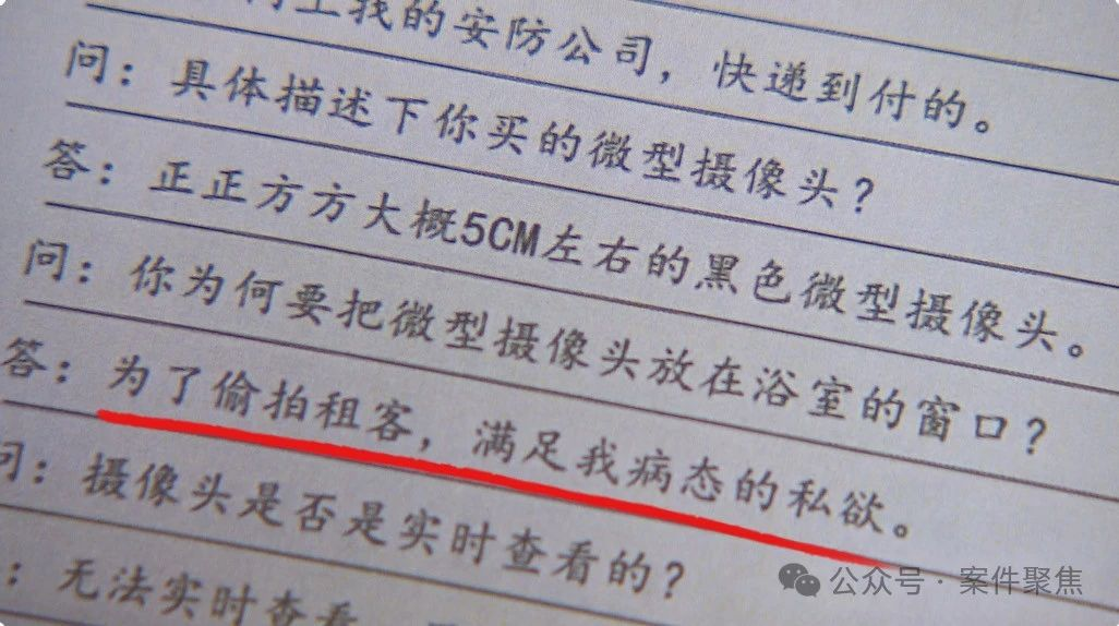 据小李回忆,徐某对外招租时曾标明要求“女生优先”,且小李每次洗澡前后,房东徐某都会借故上厕所,“在洗澡之前会去一趟,洗完澡之后又会借故去一趟。”在公安机关记录的口供中,徐某也曾承认他偷拍租客是为了满足自己“病态的私欲”。