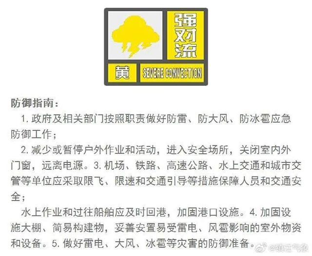 江苏镇江市气象台于2024年08月19日12时22分发布强对流黄色预警信号: