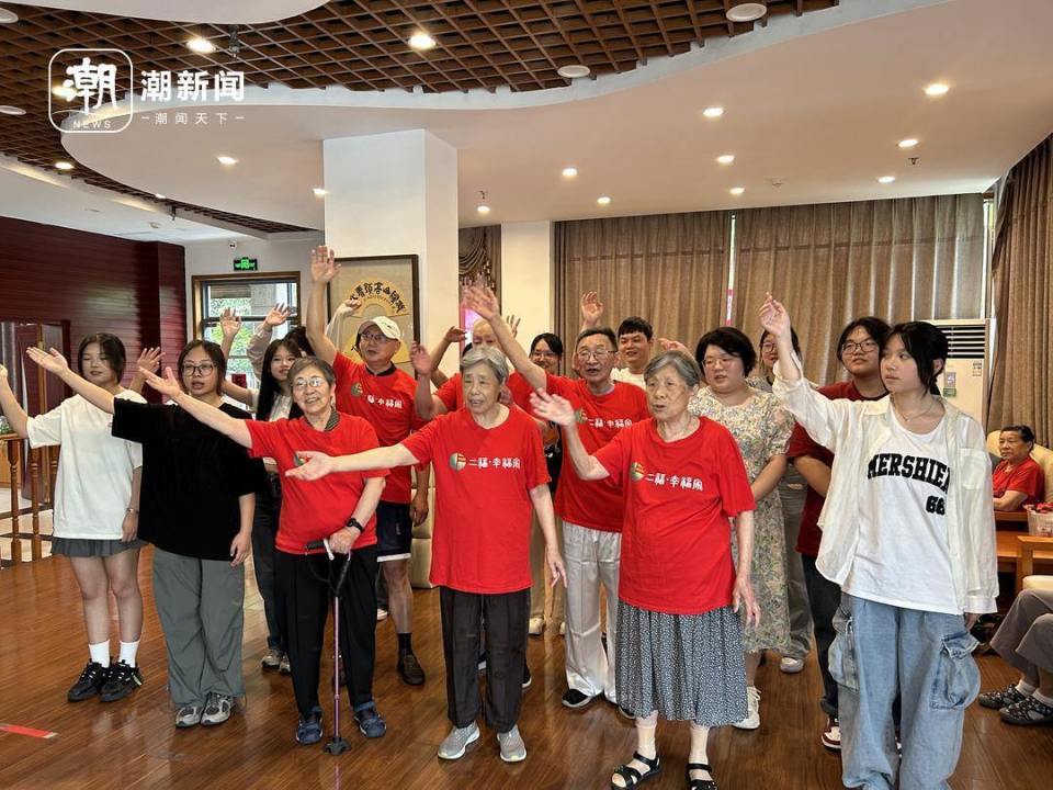 杭州市二福院内,年轻人与老人共同体验“养老一日”。乐美真 摄
