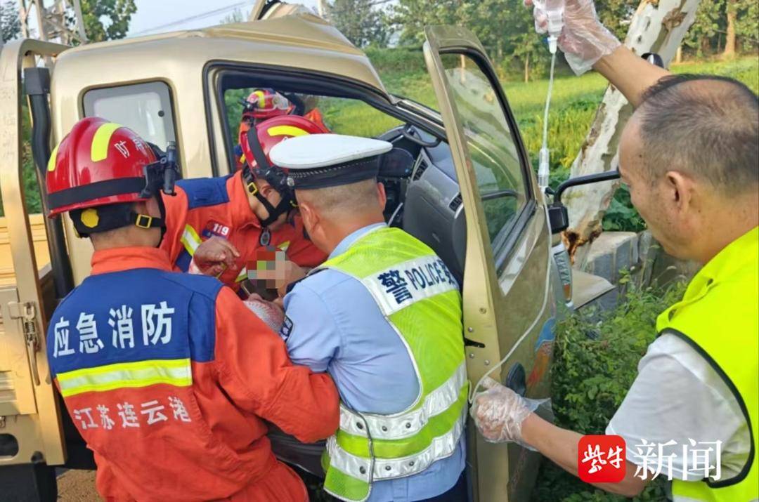 8月22日下午,连云港市东海县发生一起单方事故,一男子驾驶一辆三轮货车不慎撞到路边的树上,受伤后被困车内。东海县公安局交警大队青湖中队民警辅警及时赶到,联合消防人员顺利救出驾驶员,避免了危险的发生。