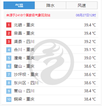 8月27日,川渝再度强势霸榜全国高温榜,前十被重庆、四川全占!