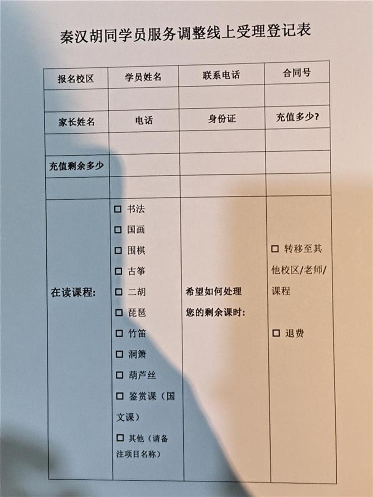 8月28日,上海市民梅女士告诉极目新闻记者,她两个孩子目前在学前阶段。大约从一年前开始,她在秦汉胡同浦东新区金桥店充值了六七万元,给两个孩子报了国学课程,学习琵琶、书法等,目前还剩两万元左右的课程没上。8月25日,门店还是正常营业,但26日晚她注意到秦汉胡同公众号发文回应公司“倒闭”的传言,这才发现不对劲。