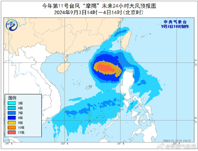预计,今年第11号台风摩羯将以每小时10公里左右的速度向西偏北方向移动,将于6日白天在海南岛东部到广东西部一带沿海登陆。中央气象台于今日10时发布台风蓝色预警。经综合研判,中国气象局于今日14时启动台风四级应急响应,全力应对台风“摩羯”。