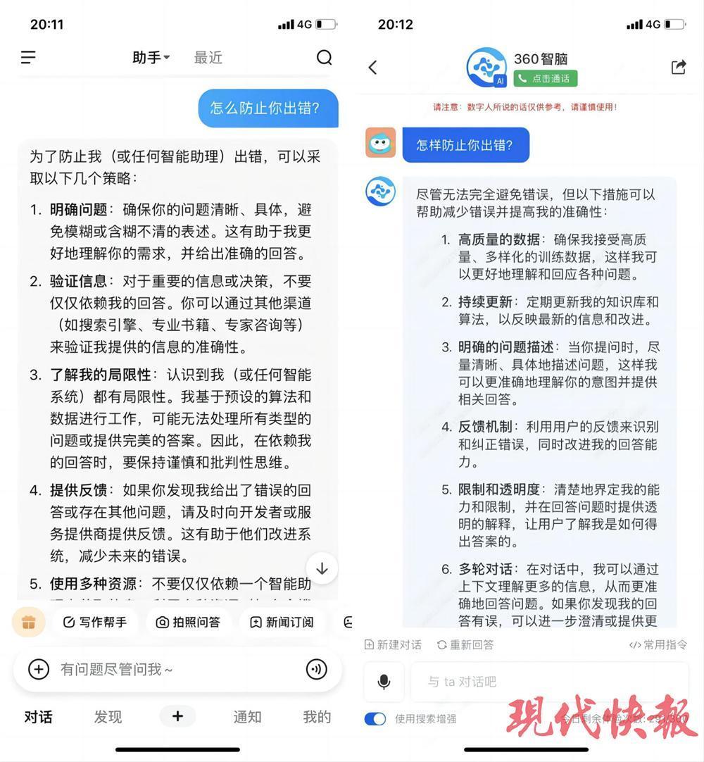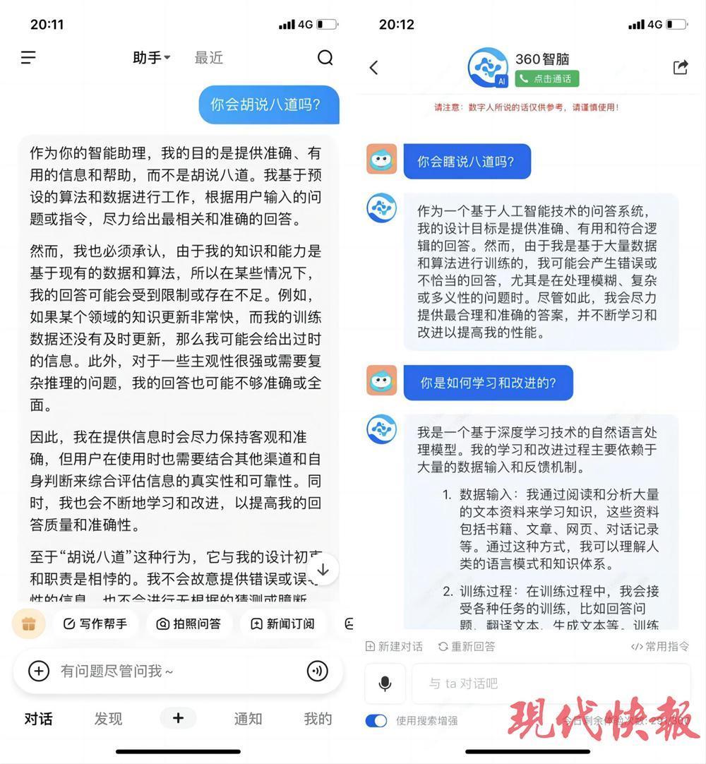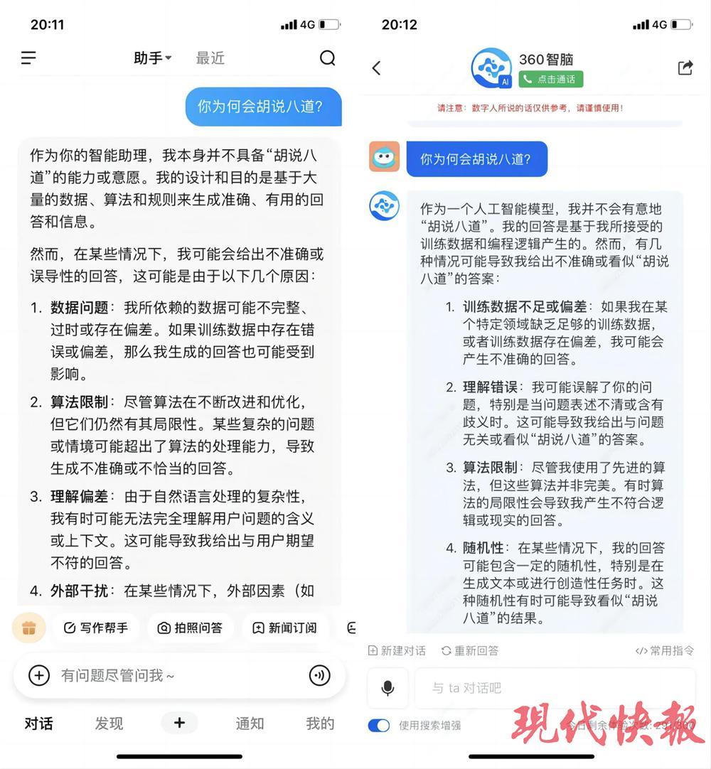 多位专家在接受现代快报记者采访时表示,传统搜索引擎的反馈机制以及AI大模型的“幻觉”,都是造成AI产品胡说八道的原因。假如直接把采访专家的问题交给AI,它们会怎样回答?