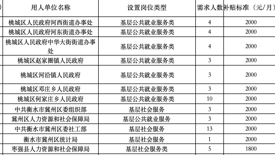 河北衡水发布公益性岗位人员需求(部分)