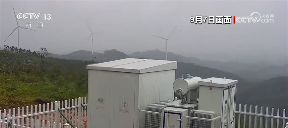 现在您看到的是台风在广东登陆3个小时后,位于广东阳江的龙源鹅岭风电场工业摄像头所拍摄下来的画面。通过画面可以看到,现场下着大雨,摄像头也被大风吹得不断抖动。目前,风电场的风机已陆续恢复运行。