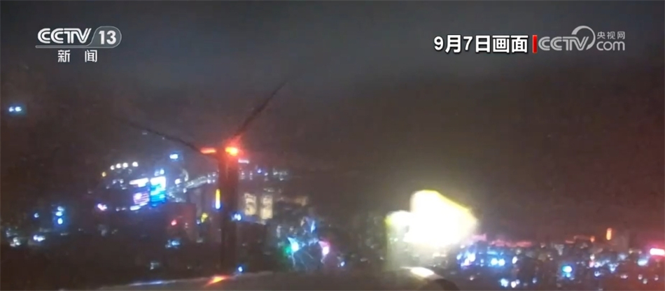 画面中的是7日凌晨一点多广西北海码头的情形,现场风速38米/秒,可以看到大雨在夜晚下如丝线一般划过。据了解,台风期间码头一直为保供电厂进行着应急上煤作业。