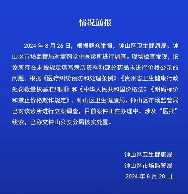 针对网友黄先生反映的“医托”问题,六盘水市钟山区相关部门发布情况通报
