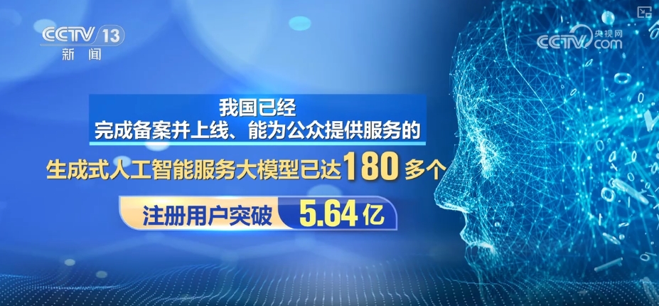 目前,我国已经完成备案并上线、能为公众提供服务的生成式人工智能服务大模型已达180多个,注册用户突破5.64亿。