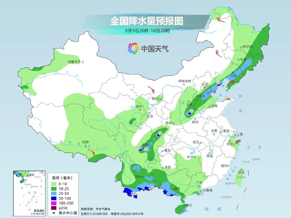 北方由于多短波槽活动,冷空气和副热带高压外围偏南风汇合,降雨天气频繁。今夜起至10日,北方地区又将迎来一次降水降温天气过程,西北地区中东部、东北、华北等地将有小到中雨,部分地区有大到暴雨,局地降温8℃左右。