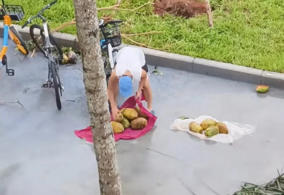 在海口读书的大学生步步告诉九派新闻,7日白天有很多人去捡椰子,他也去捡了几个。“很多是大一新生,没见过椰子,也没见过台风,看到满地椰子,一溜烟就跑出去了。”
