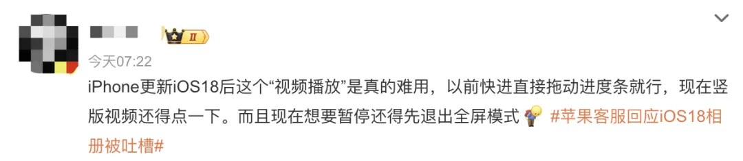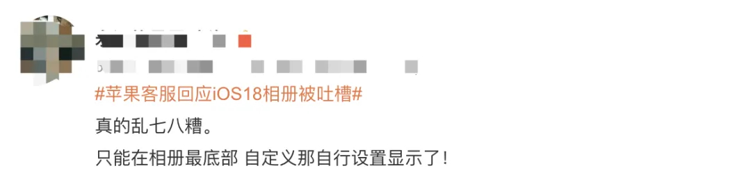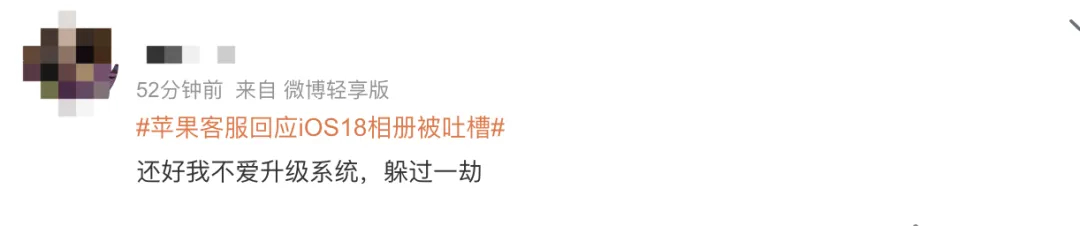 然而更新发布后,“iOS 18 还我妈生相册”、“iOS 18 丑”等话题登上微博热搜,不少网友吐槽新的相册布局。