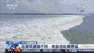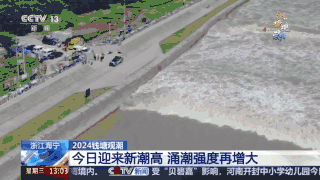 总台记者 邵薇:今天钱塘江大潮迎来大潮汛,潮水高度来到了1.6米左右,相较于前两天有很明显的增幅。
